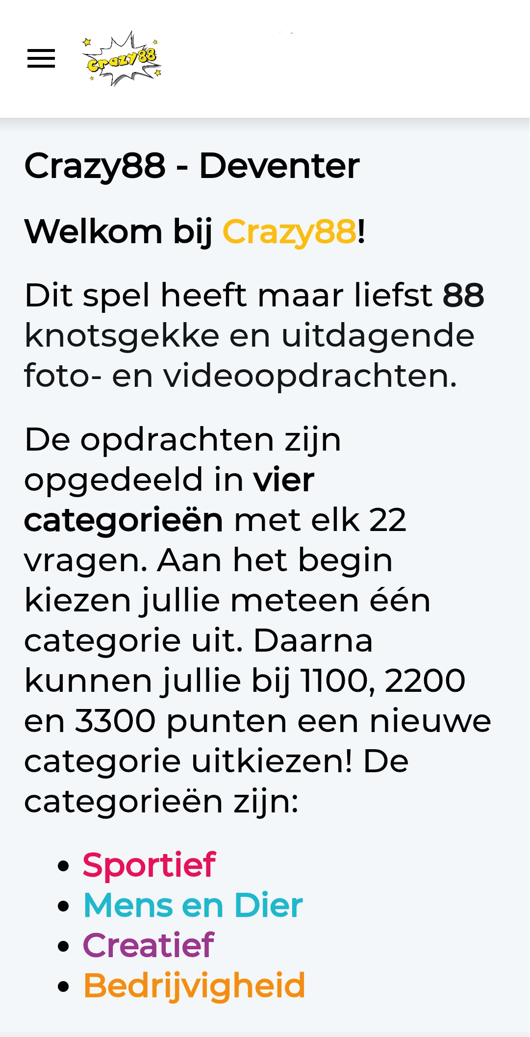 - In de app zien jullie 88 locaties. Ga naar deze locaties, verzamel de opdrachten en laat de hilariteit beginnen!